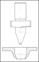 The long Fdrill has a long parallel body designed to produce a hole that is cylindrical for the entire bush length. Material that is backward extruded is rolled into a rim by the Flowdrill collar, ( L = LONG )*