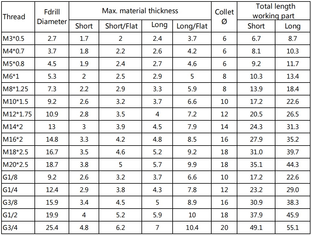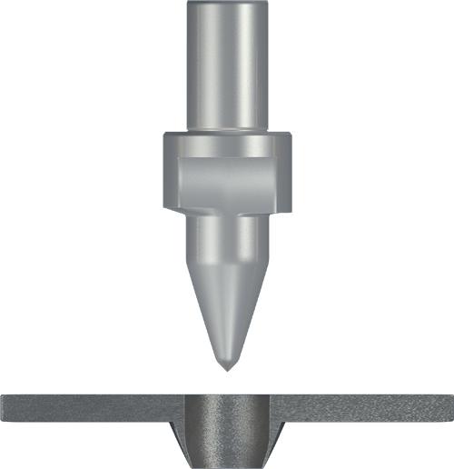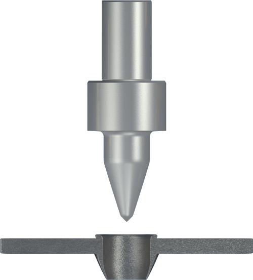 2.Fdrill "Flat"(or "cut") for the production of fdrilled holes without collars. The type "Flat" Fdrill has cutting edges to remove the material which flows upwards during the drilling process. Thus a flat surface results around the hole.
