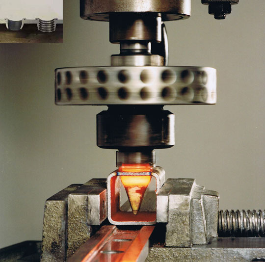 Fdrill熱熔鉆,同傳統工藝比較,在保證薄壁件連接強度的同時,可以簡化加工工序,無需附加件的額外支出,節約生產成本,提供生產效益。 Fdrill(株洲市熱鉆工貿有限公司)作為專業的熱熔鉆頭生產商,多年來始終專注于fdrill熱熔鉆頭的研發與生產。與傳統加工工藝不同,在加工薄壁金屬材料時,為了保證螺紋或軸套的強度,傳統工藝通常采用鉆孔再焊螺母、壓鉚、焊背板或軸套等;而采用熱熔鉆頭,在鉆孔的同時形成襯套,可以利用該襯套攻絲或作為軸套使用,在保證薄壁件連接強度的同時,可以減少加工工序,無需附加件的額外支出,節約生產成本,提高生產效益。株洲熱鉆銷售flowdrill,formdrill,drabus,centerdrill,frictiondrill。