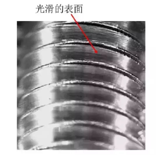 切削螺紋金屬組織是被切斷的,齒頂平直。