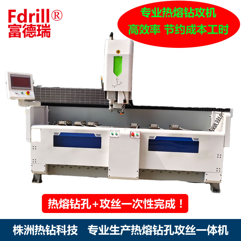 熱熔鉆的工作原理:熱熔鉆孔機的工作原理基于高溫下材料的熱塑性變形。其核心部件包括鉆頭和加熱裝置。鉆頭通常由高溫合金如碳化鎢或鎢銅合金制成,以確保在高溫環(huán)境下仍能保持足夠的硬度和耐磨性。加熱裝置則可以是電加熱元件或火焰,用于將鉆頭與材料接觸的區(qū)域快速加熱至熔化點。在工作時,加熱裝置將鉆頭接觸的區(qū)域加熱到高溫,高溫能量通過傳導(dǎo)和輻射作用于鉆孔區(qū)域,使材料局部熱化。當(dāng)材料溫度達到熔化點時,其表面會發(fā)生熔化現(xiàn)象,形成熔融狀態(tài)。此時,鉆頭迅速旋轉(zhuǎn)并移除熔化后的材料,從而形成一個孔洞。同時,熱熔鉆還會將周圍的材料加熱,使其發(fā)生局部熱融并填充鉆孔,提高孔洞的質(zhì)量。這一過程不僅減少了鉆孔過程中的切削力和熱量,還顯著提高了鉆孔的精度和效率。熱熔鉆的應(yīng)用領(lǐng)域:熱熔鉆孔機憑借其獨特的優(yōu)勢,在多個領(lǐng)域得到了廣泛應(yīng)用。在汽車零配件行業(yè),熱熔鉆孔機可用于加工發(fā)動機部件、散熱器、車身結(jié)構(gòu)件等,滿足高精度、高效率的加工需求。在鈑金、空調(diào)、散熱器等行業(yè),熱熔鉆孔機能夠輕松應(yīng)對薄壁金屬材料的鉆孔任務(wù),提高產(chǎn)品的質(zhì)量和生產(chǎn)效率。此外,家具、醫(yī)療器械、健身器材等行業(yè)的金屬部件加工也離不開熱熔鉆孔機的支持。貨架、容器等金屬結(jié)構(gòu)件的制造同樣受益于熱熔鉆孔機的高效加工能力。值得注意的是,熱熔鉆孔機不僅適用于金屬材料的加工,還可用于塑料、陶瓷等非金屬材料的鉆孔。這進一步拓寬了其應(yīng)用領(lǐng)域,為更多行業(yè)的創(chuàng)新發(fā)展提供了有力支持。