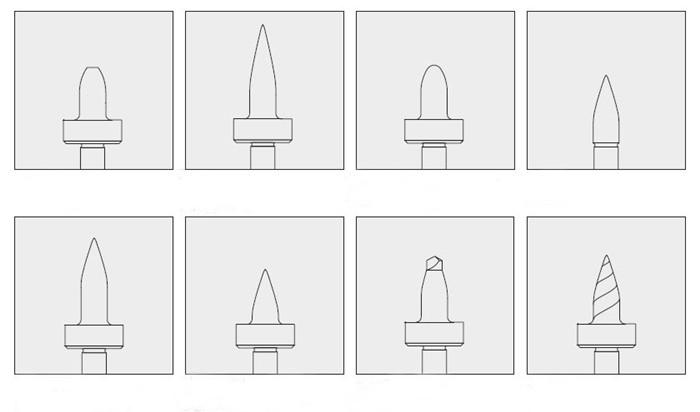 株洲熱鉆公司技術支持團隊可以根據用戶的加工要求設計并生產特殊規格的非標熱熔鉆頭。超長熱熔鉆:此種鉆頭適合于因材料或特殊環境的要求而需要鉆頭的圓柱部分特別長的情況;這種設計產生的襯套是一個很長的圓柱體。超短熱熔鉆:此種鉆頭適合于因材料或特殊環境的要求(如管道)而需要鉆頭的圓柱部分特別短的情況;這種設計產生的襯套是圓錐形的,攻絲后提供強大拉力。與短鉆很相似,但其錐形部分較短,加上42度角,一般用于小管、小孔加工。鉆頭頭部特殊半徑的熱熔鉆:鉆頭的圓柱頂部部分可以改變,用于控制環狀凸臺的形狀或形成一個埋頭螺孔。特殊角度熱熔鉆:鉆頭的劃平部分可以是一個特殊的角度。標準的劃平型鉆頭與水平面成5度角,這個角度可以增加,以使沿孔產生一個倒角。擴孔用熱熔鉆:可以在材料上將原來較小的孔熱熔擴孔,形成更大直徑的襯套。