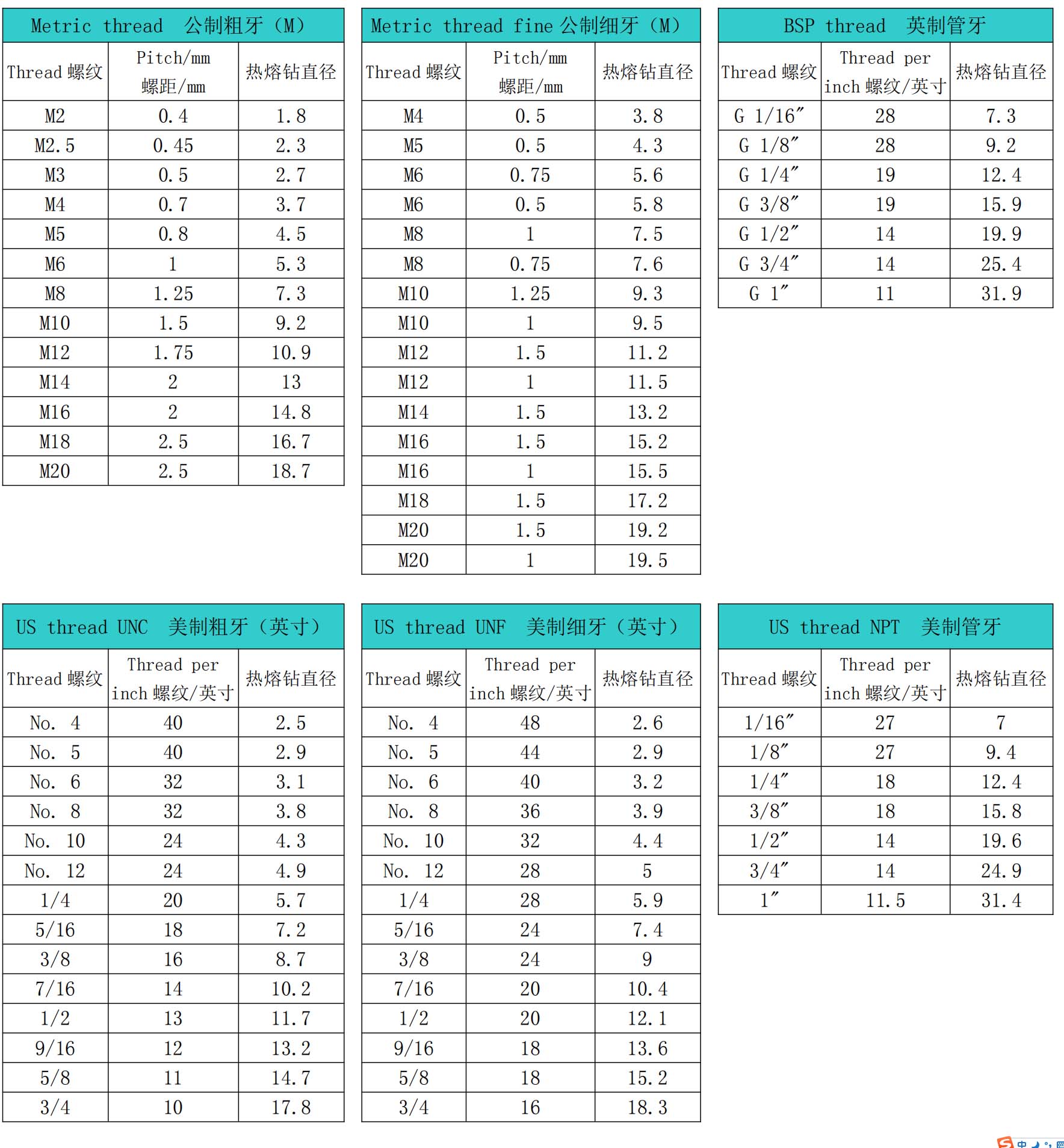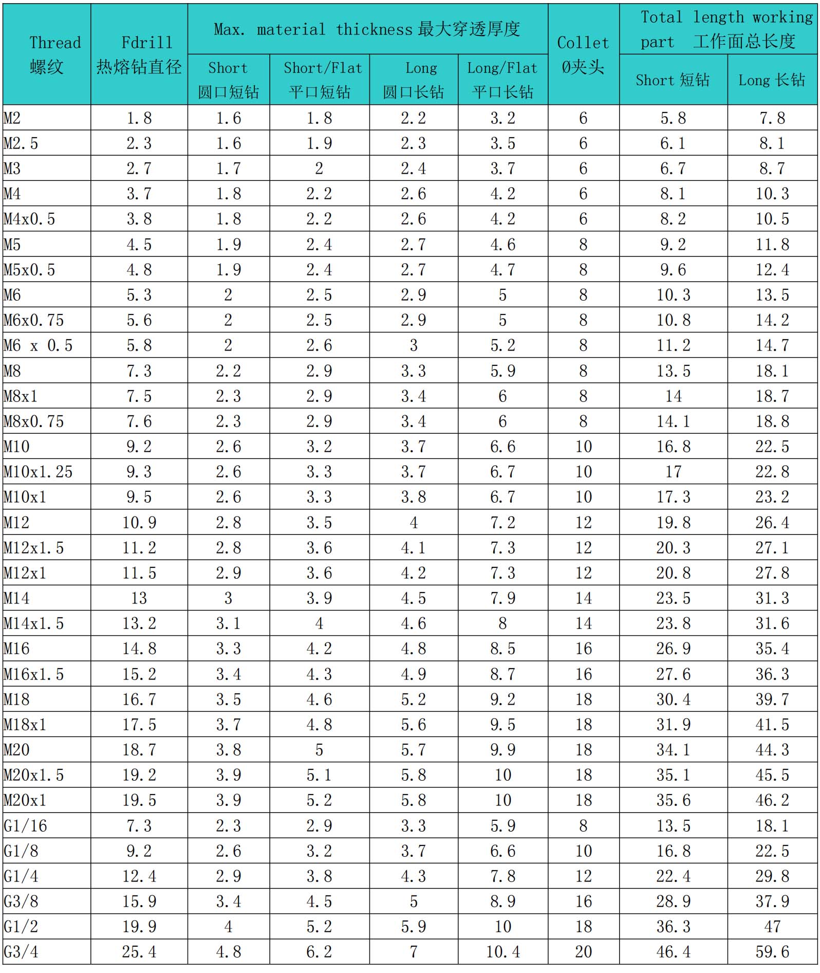 熱熔鉆頭螺紋參數(shù)表