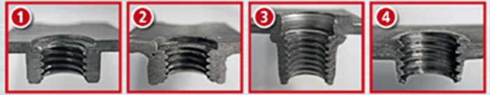 Fdrill熱熔鉆解決了這些固有問題,可以有效地在薄板或方管、圓管上鉆孔攻絲,改善了孔的精度、降低生產(chǎn)成本、節(jié)省大量準(zhǔn)備和裝配時(shí)間。 下面是生產(chǎn)一個(gè)M8螺牙(2.0mm中碳鋼),使用傳統(tǒng)工藝 vs Fdrill熱熔鉆。